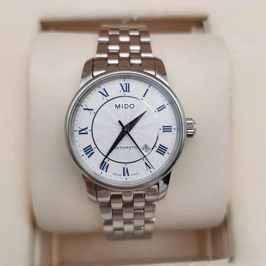 斯文系:美度贝伦赛丽系列M7600.4.21.1女款机械腕表,29mm表径,银白色表盘,精钢表壳表链,日期显示,单表9成新。