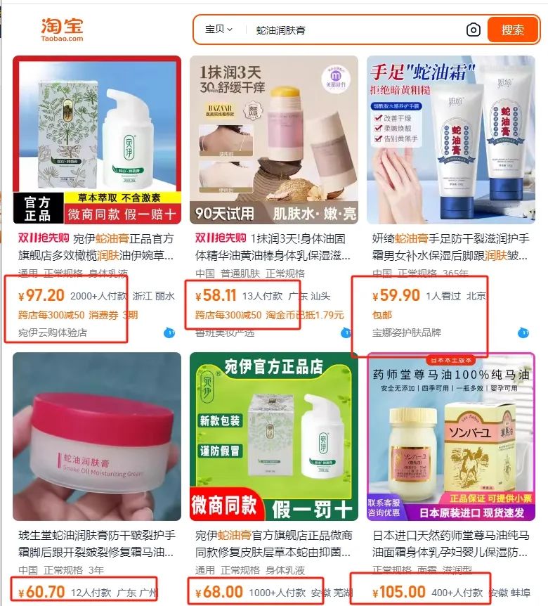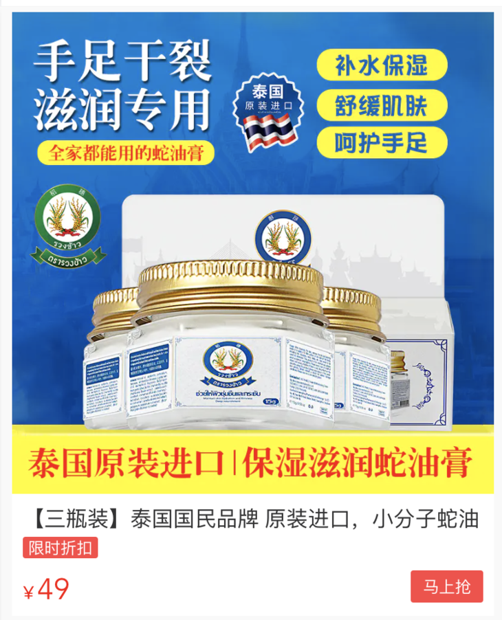 市面上好点的蛇油润肤膏,都至少五六十/件,进口的卖到上百也不奇怪。