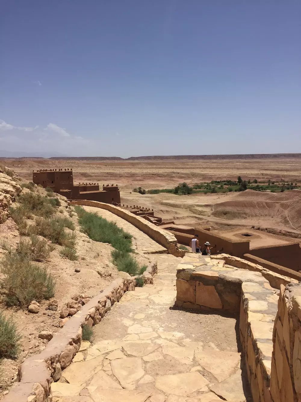 街巷里记录了 1000 多年的一部分非洲历史,是非洲历史的缩影,荒凉的土地上,单调的黄土色,简单的食物,单一的信仰,组成摩洛哥穆斯林古城的生活写照。由于这座古城独具特色,它还是《权力的游戏》《木乃伊》电影的拍摄地。行程继续向前我们参观了当地一个村落,该村落由于地处峡谷之中,有很多水源,所以可以种植一些作物,比如当地作物,有橄榄,杏,核桃树。