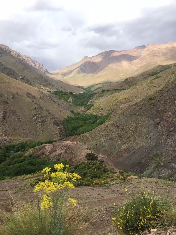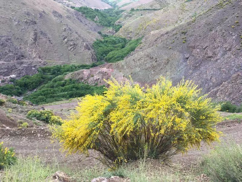 我们徒步的山区是山脉很小的一部分,用脚步丈量世界是徒步者对大自然最为虔诚的尊重。山区徒步从山底到山顶大概 16 公里路途,会看到山区不同的风景,一路上可以看到摩洛哥特有的沙漠仙人掌和仙人掌果,还有很多不知名的植物,最多的也是最好看的是一种黄色的小花,布满山区