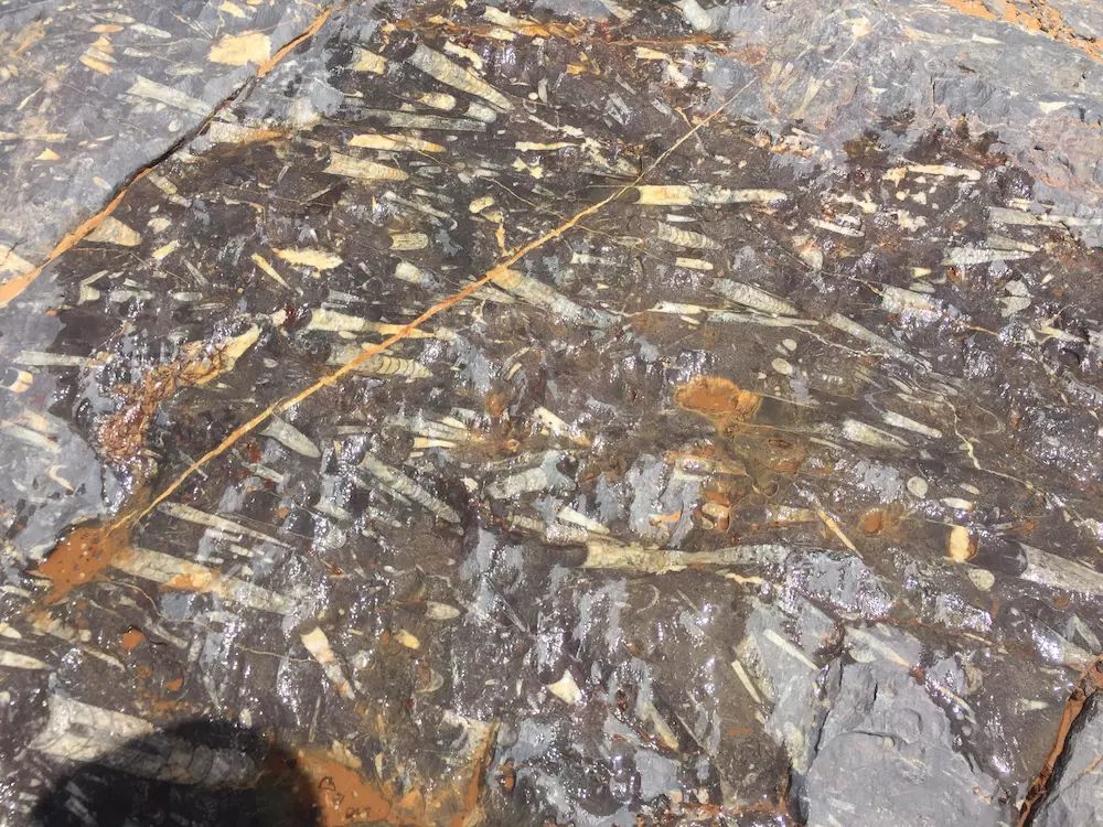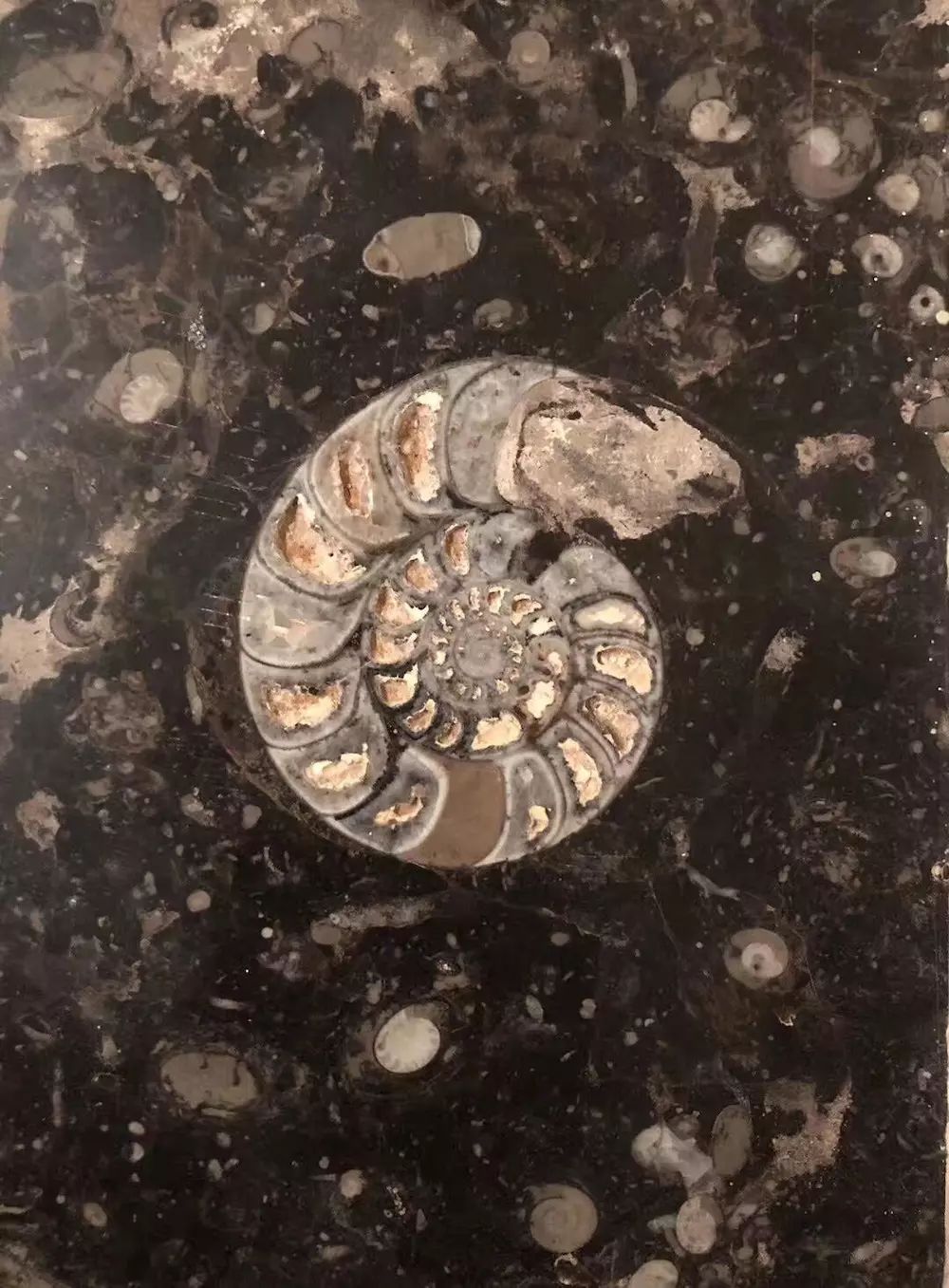 在亿万年前,撒哈拉并不是沙漠,而是海洋,很多海洋生物,甚至是高等动物的祖先生活在这里,有生命起源的意义。向导用水冲洗一块化石石滩,我发现石头里面藏着海螺、蜗牛、和鱼的形状,记载着一万年前生物的演变。每一块都是来自亿万年前远古的礼物,记载着生命最初的样子。