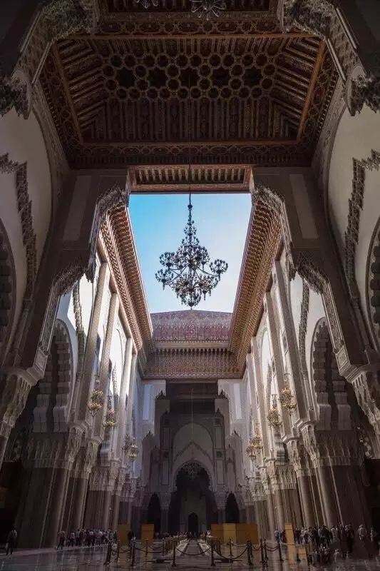作为伊斯兰教的最大的寺庙,整个清真寺可同时容纳 10 万人祈祷,是世界第三大清真寺,排在沙特阿拉伯的麦加和麦地那清真寺之后,清真寺的建造与已故国王哈桑二世有着直接关系,也是唯一一个对非穆斯林开放的寺庙。伊斯兰教不同于佛教,它是排外的,只有穆斯林和教徒可以进入,其他的人是不能进的,今天有幸进入到清真寺深入到这个宗教内部感受它的与众不同。