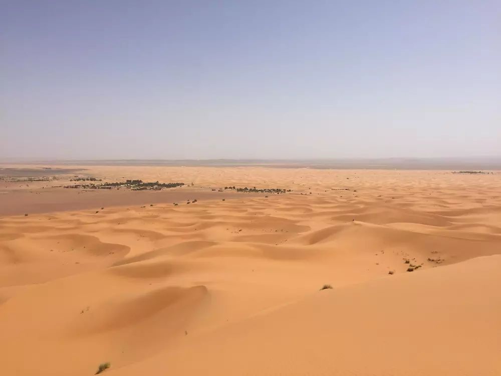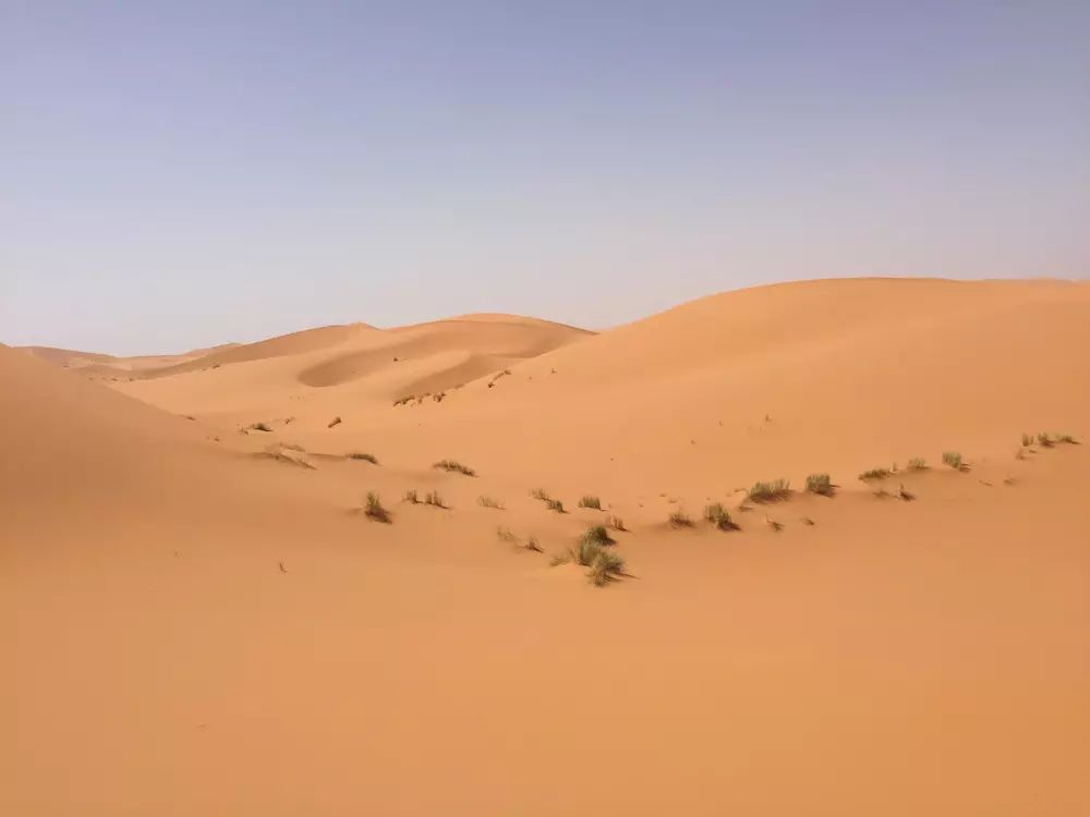 下午 4 点,我们进入到沙漠,以前看过很多关于非洲的纪录片、电影,对非洲这片神秘的土地有些极大的好奇,今天走进它才真正看清楚它的样子。这片广袤无垠的土地,绵延数千公里的沙漠,带着对撒哈拉的崇敬,走进它,回味三毛笔下那片神秘而广大的非洲沙漠。