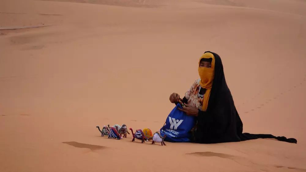 上午的沙漠徒步,我们只是上了一小片沙丘,我们亲密接触这片沙漠,越临近中午沙子越来越热,气温越来越高,太阳烘烤着沙漠,感觉自己就快被烤熟。可爱的队员蹦跳着跑过沙丘,像小松鼠一样可爱极了哈哈哈。我们跟随当地向导拜访了当地的游牧民族居民,这里简陋的帐篷里居住着居民。游牧民族以骆驼为生,每天生活简单而枯燥,他们生在这里,长在这里,与沙漠为伴,与信仰为伴,与孤独为伍。