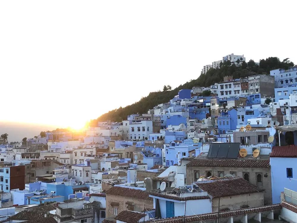 晚上在这座蓝色之城看日落,看着阳光下蓝色变成灰蓝色,之后变成黑色,成为当地人以及外来游客度过下午时光的方式最好的方式。