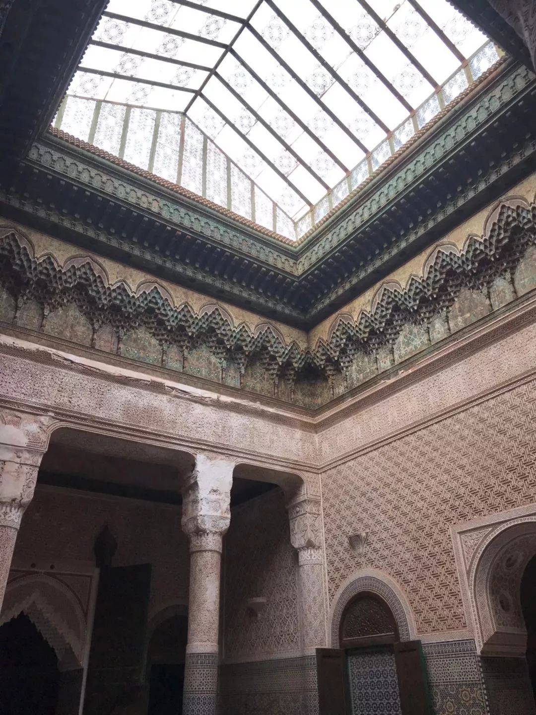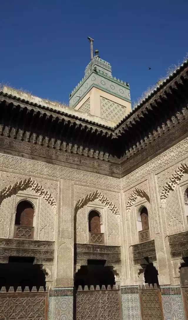 经过古兰经学院建于 1350 年,是世界上第一所经学院,也是唯一一所内部建有清真寺的学院。整座建筑装饰十分精致,屋檐墙壁上的石刻雕花和木头雕刻美丽繁复。