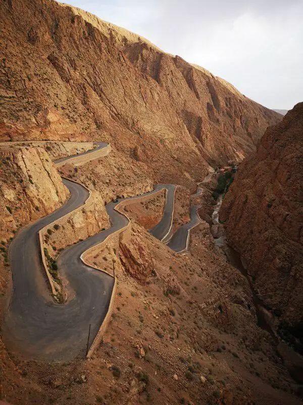 之后到达达戴斯峡谷深处,曾经的 f1 赛道,蜿蜒曲折的山路,有些路段转角达到 180 度。短暂停留后,驱车开往菲斯。
