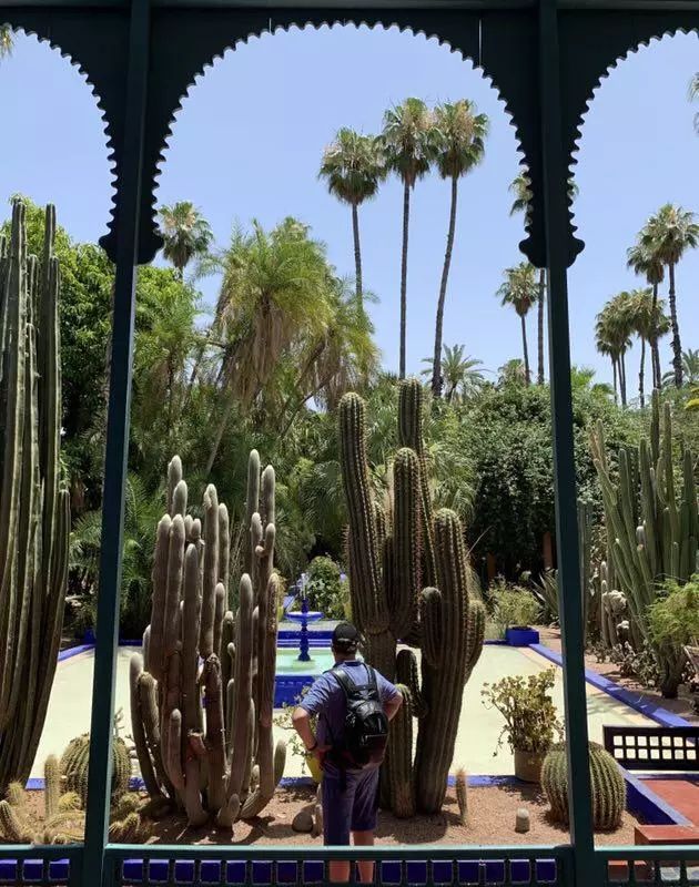 来到马拉喀什圣罗兰花园,圣罗兰花园是一座隶属于已故法国时装大师伊夫。圣·罗兰的私人花园,这位大师也是著名奢侈品品牌圣罗兰的创始人。花园的主基调是蓝色的,因此被世人称之为“圣罗兰蓝”。进入花园一步一景,仿佛穿越到东南亚。如今大师已经远去,但他留下的这抹蓝依旧是那么经典和迷人……