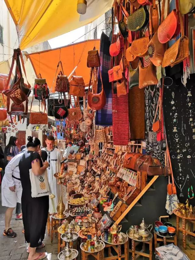 由于我们行程时间恰逢当地斋月,当天又是开斋节,其重视程度不亚于中国春节,我们来菲斯这天很多人们都出去吃吃吃了,所以很多店铺关门。我们只能随意挑一两个店铺逛逛,顺便买点纪念品。开着的店铺物品玲琅满目,手工皮包,尖头鞋,陶制品,老古董,我想如果所有店铺都开着,我们真的会逛一天,哦不一周哈哈哈