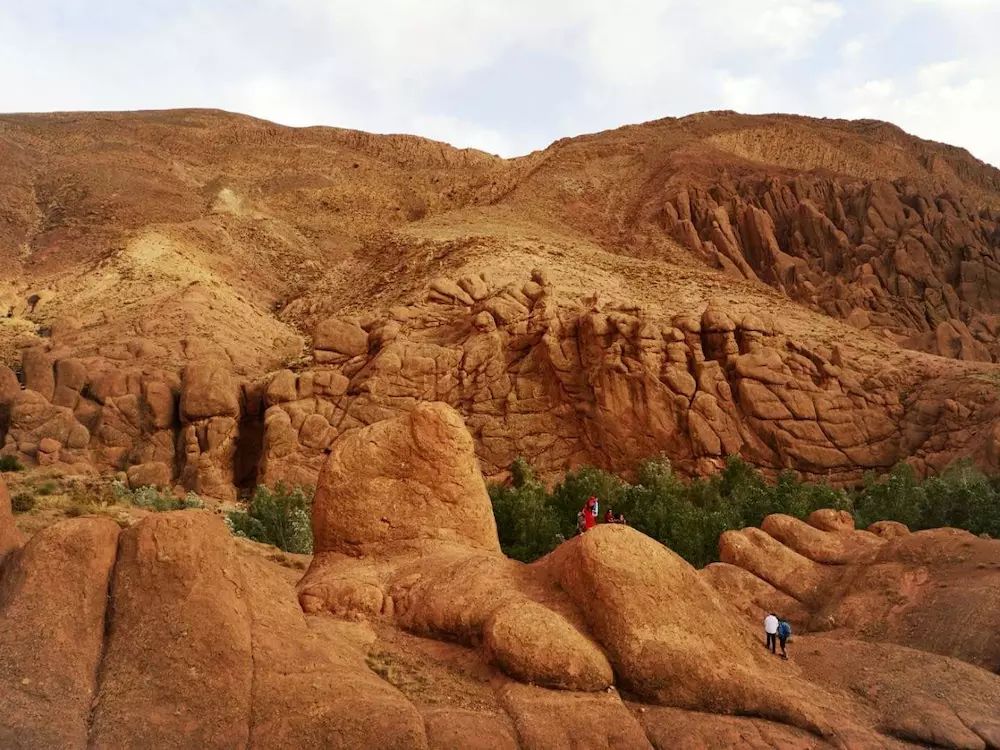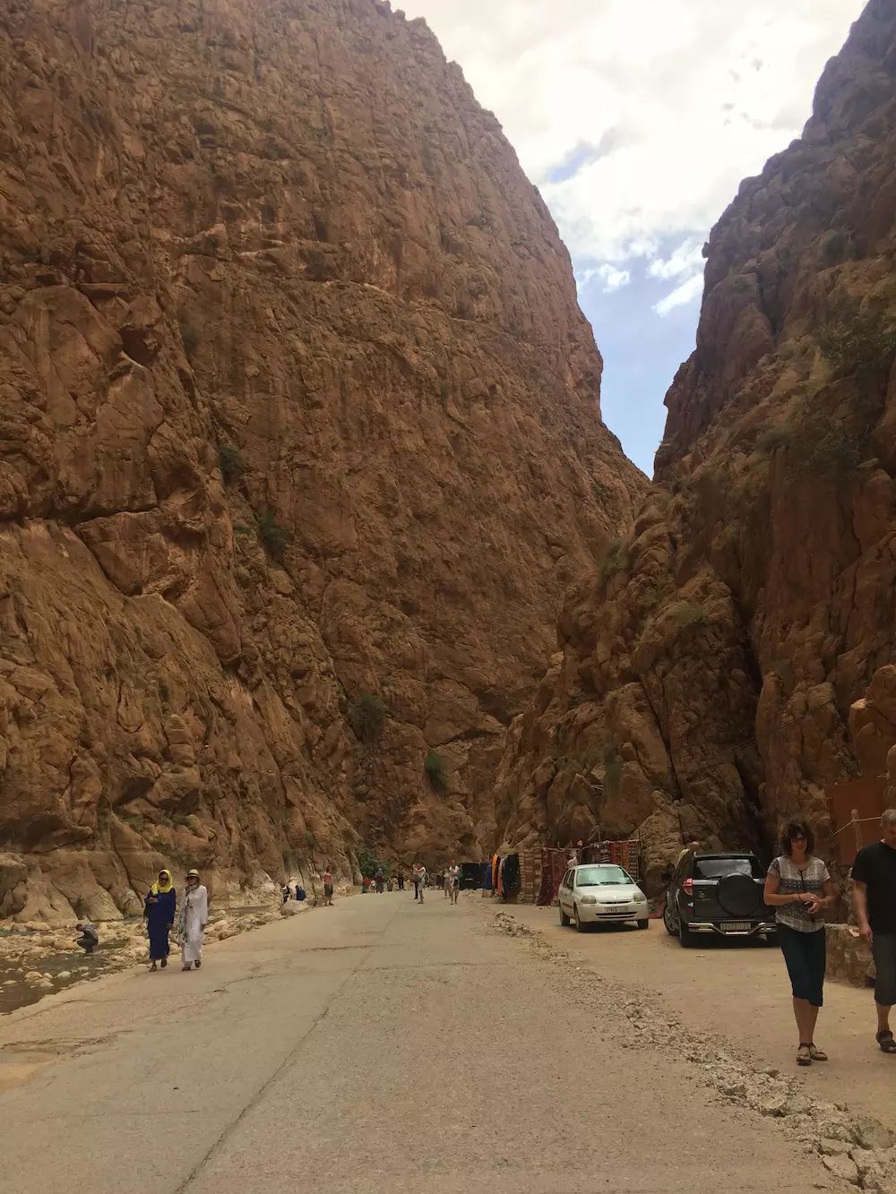 向导是一位柏柏尔人,有着黑黑的皮肤,深邃的双眼,比典型的阿拉伯人眼睛长的还要好看。跟随向导的脚步我们逐渐深入到了峡谷深处,有一种曲径通幽处,禅房花木深的感觉,好像到了世外桃源,两侧高达 300 多米的悬崖还是很多攀岩爱好者的攀岩圣地,他们用自己的身体力量去征服悬崖峭壁,有的无防护的攀岩者会把生命交给这里。