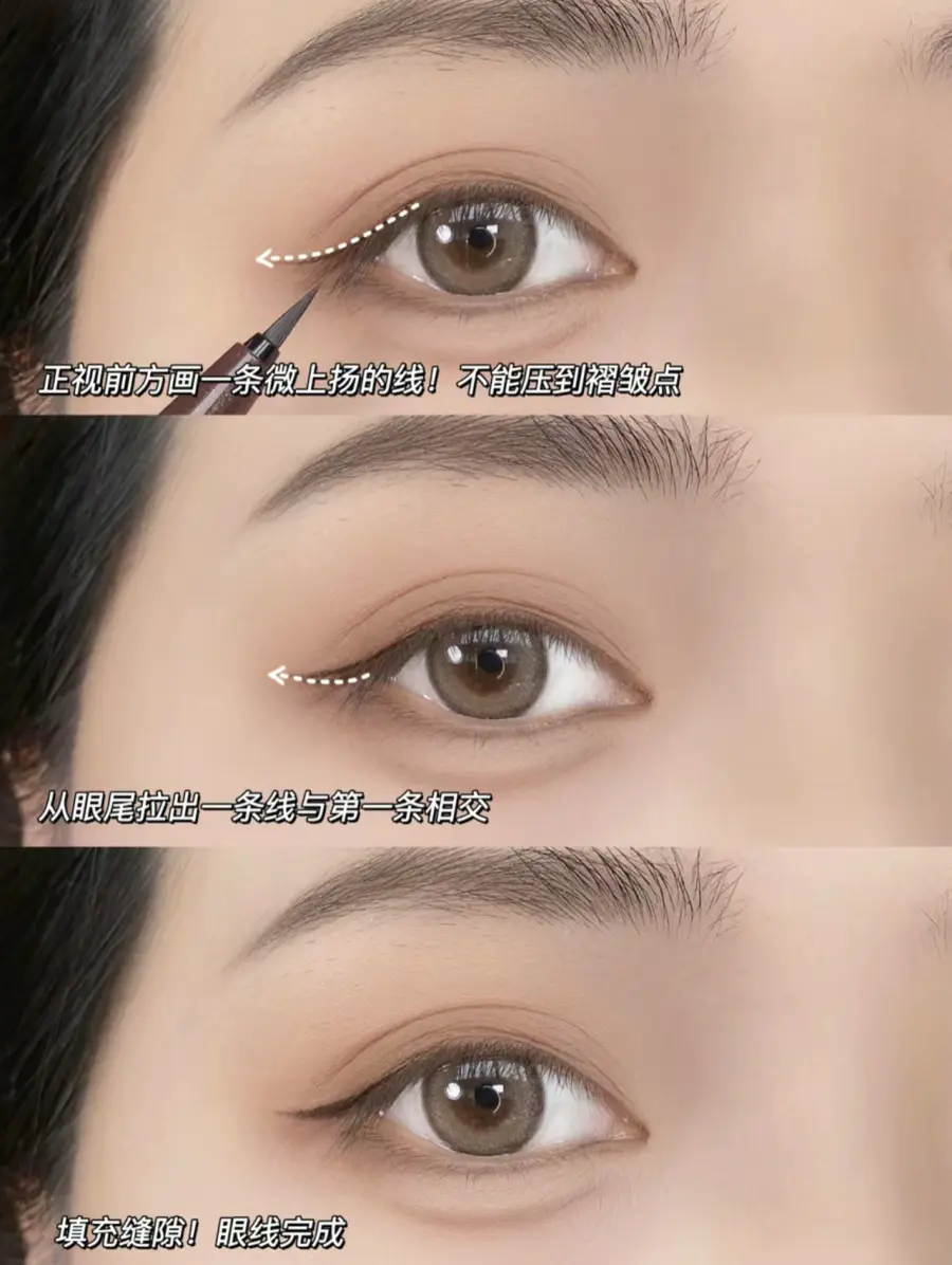 1⃣️ 正视前方,从瞳孔外侧拉出一条微上扬的线