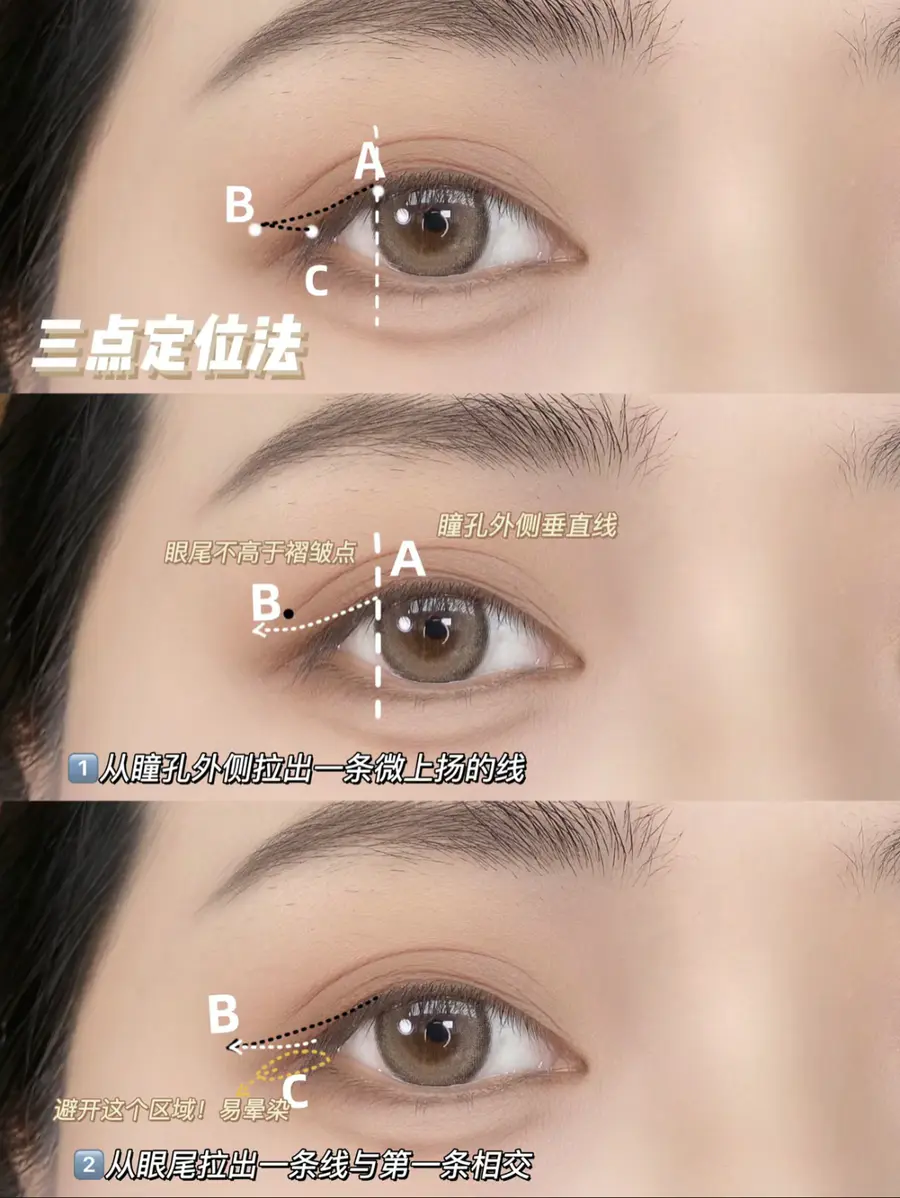 2⃣️ 从眼尾拉出一条线与第一条相交