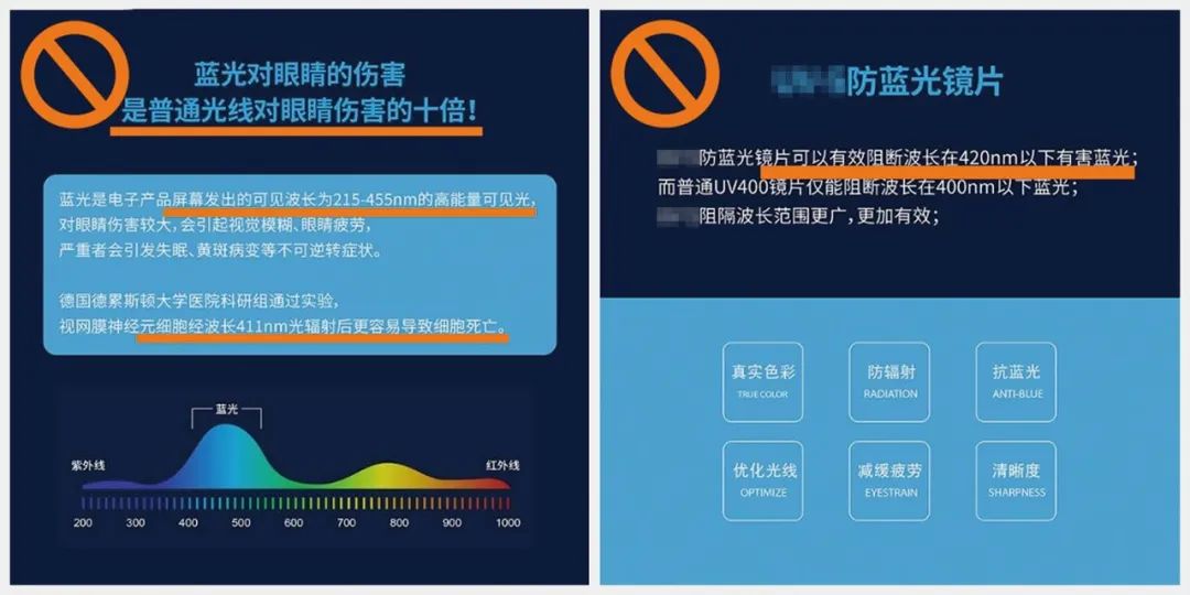 市面上有些防蓝光镜片会对眼睛造成伤害: