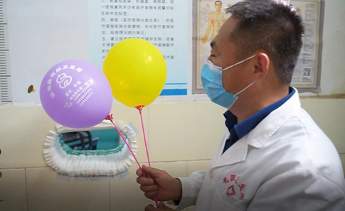 因为擅长小儿中医,来看病的小孩子很多。为了照顾到儿童患者的心情,他在自己的诊所准备了气球。而一个小小的气球,就搭建起了他和病人之间的桥梁。现在很多小孩子还没开始看病都会先找李医生要气球,同时气球也有隐形的宣传的作用,颜色鲜艳的气球上面印有花园卫生室的logo和诊疗特色——中医、雾化,这样许多家长都在有看中医、上雾化需求时能想到李朝阳医生的诊所。