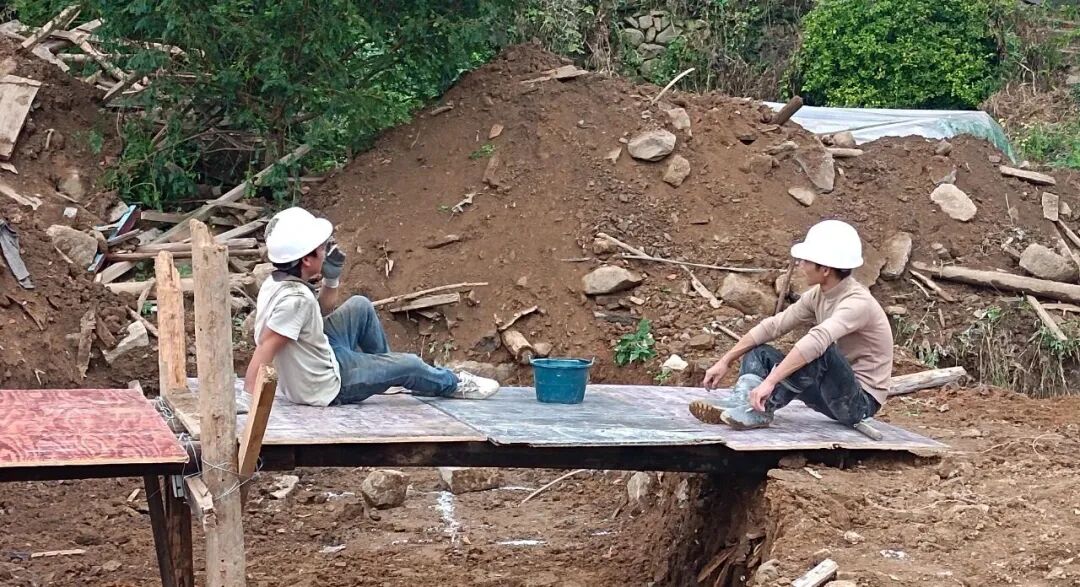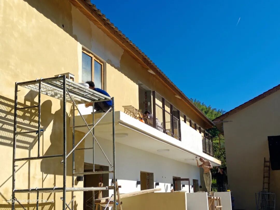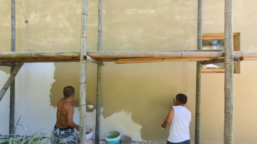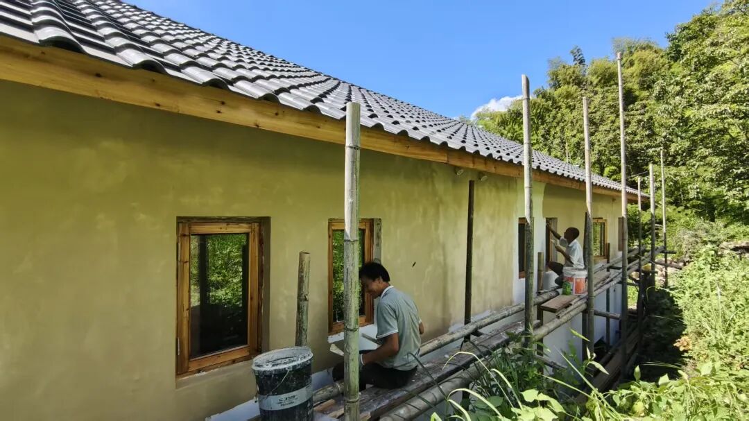 草木有枯荣,房屋有代谢。房屋墙体采用了费力耗时的泥土抹面方案,更加自然安全。安吉泥土学校任老师给予了合作指导,任老师学生吴应达师兄到现场做样板墙,湖北基地的朋友刘笑师兄负责泥抹面施工。
