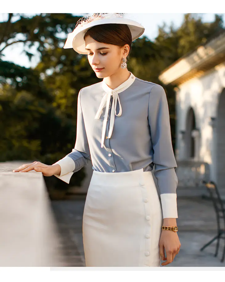蝴蝶结衬衫搭配西装更加一丝女性的柔美气质