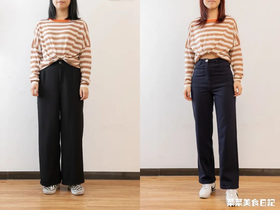 喜欢慵懒风的姐妹,可以选择左边细条纹款,喜欢BM风、个子小巧的姐妹,右边粗条纹更适合奥~