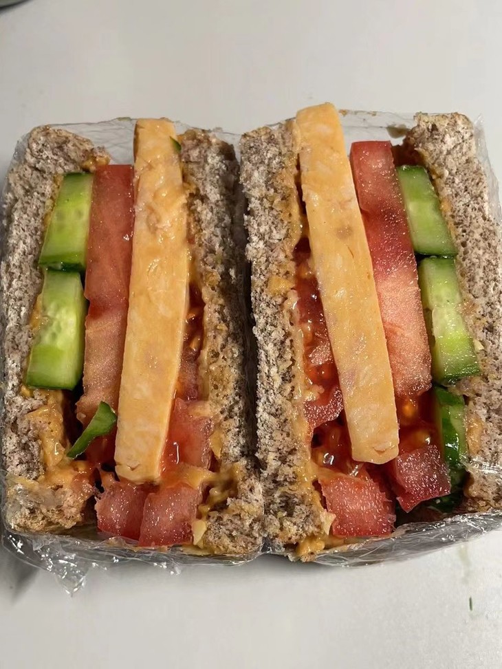 来一袋鸡胸肉饼,搭配全麦面包和清爽时蔬