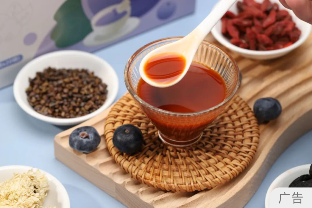 妈妈们可以给宝宝日常适量吃些含叶黄素和花青素的果蔬。叶黄素对视网膜中的黄斑有极其重要的保护作用,它具有防蓝光、抗氧化、消除自由基等作用。它广泛存在于蔬菜、花卉、水果等植物中,一般来说,颜色越是深绿色的蔬菜,其所含有的叶黄素就越多,比如菠菜、芦笋、芥蓝、莴苣、绿色花椰菜,蛋黄也是不错的叶黄素提供者。[3]花青素又叫“花色素”,是含特殊分子结构的类黄酮化合物,一种水溶性天然色素,是对抗自由基最有效的天然抗氧化剂之一,可以减少自由基对眼睛的伤害。[4]实际上,花青素与叶黄素也是一对黄金护 眼搭档,这两种营养物质协同作用,护 眼效果会更为出色。我侄子是个好动的宝宝,但我发现,他在看动画片的时候却异常安静,整个人像钻进了平板里。提醒他离屏幕远一点,每次也就保持个几分钟。为了保护他的视力,每天都会限制看动画片的时间,但这种效果其实微乎其微。我姐姐问我有没有什么好的食疗方?或许可以试一试“菊睛丸”!“菊睛丸”出自宋•元丰年间《太平惠民和剂局方》卷七:“主治肝肾不足,眼目昏暗,瞻视不明,茫茫漠漢,常见黑花,多有冷泪。”[5]里面的成分有:菊花、枸杞子、黄精、决明子。《本草经疏》中说:“枸杞子性甘、平、温,专于补肾、润肺、生津、益气”,枸杞子负责滋养肝肾阴血。源头阴血足,眼睛就水润润的不干了。[6]决明子,《本草乘雅》记载“决明叶昼开夜合,两两相贴。”它和人的眼睛一样,白天开,晚上合,天生对眼睛好,因此得名决明。[7]玉竹,据《中药大辞典》记载:性味甘、平,入肺、胃经,养阴润燥,除烦止渴,可以把那一点虚热退散下去的。[8]除了放松眼睛,也会让宝宝身体整体舒服很多。 都是药食同源的材料,小家伙经常看动画片、上网课、看书学习眼睛有点累了,都能用这个方子。经常看手机,或者对着电脑屏幕的成人,也适用。方子虽好,但其实它制作的程序比平时的食疗方更加复杂,而且有时候勤勤恳恳做好,味道不怎么好,小朋友一般都格外抗拒,怎么办?这个蓝莓叶黄素酯发酵饮正是由上面的名方“菊睛丸”加减优化制成。自然本草力量,眼睛水灵有神明亮。