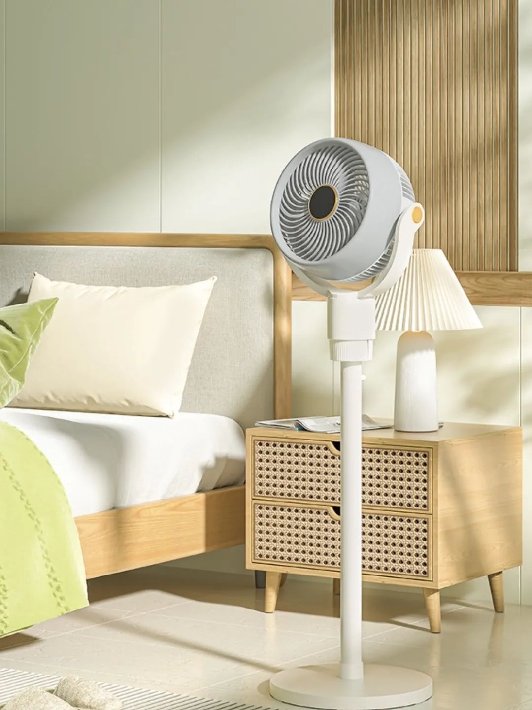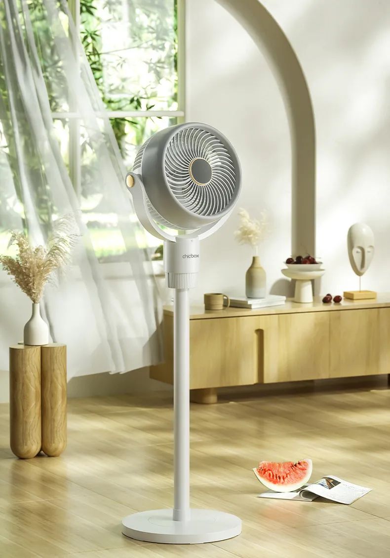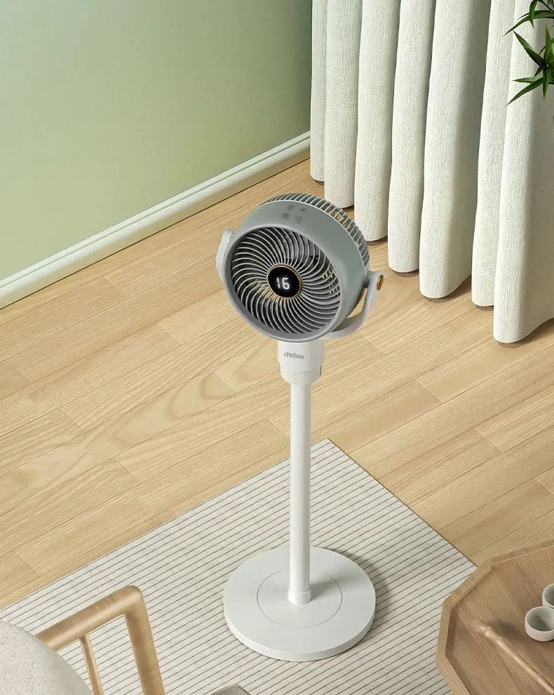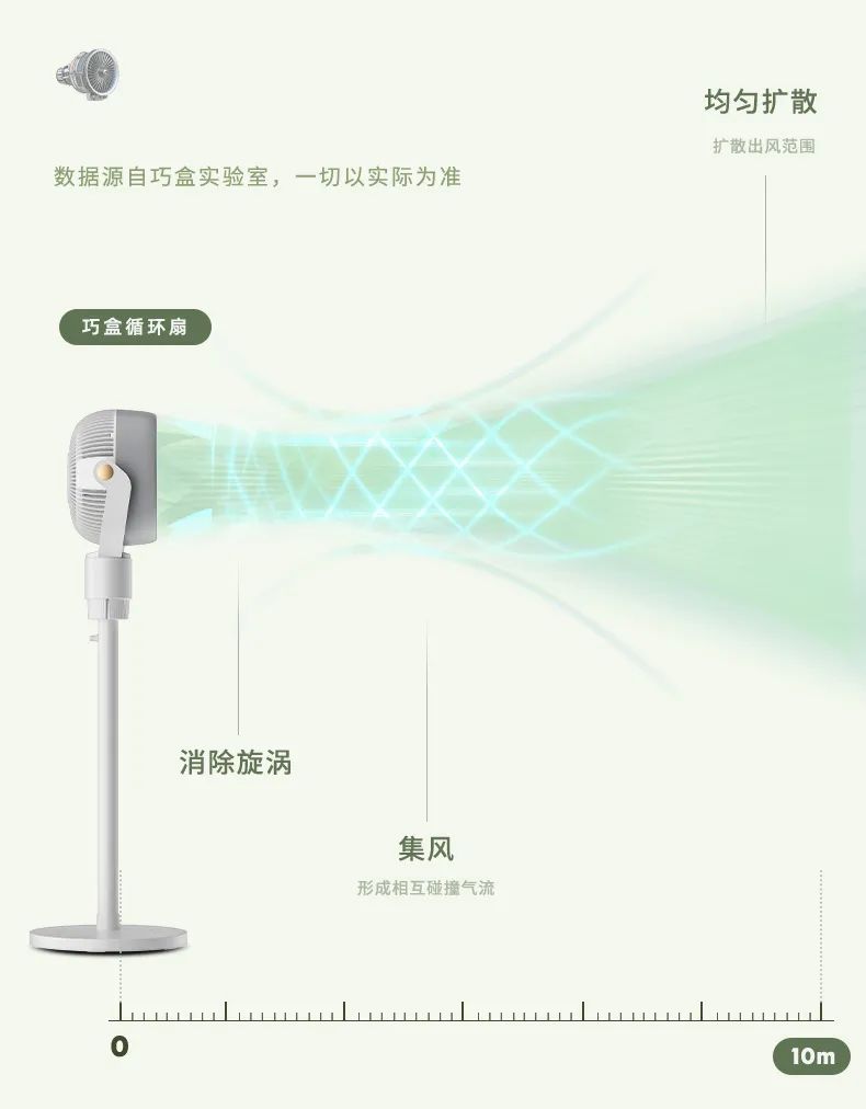 普通风扇一味的追求「大风力」,导致吹出来的风「又冷又硬」。只有正对着风扇非常近才能有风感,不仅一屋子里的其他人常常吹不到,时间长了还容易浑身难受、导致头疼病...因为对比传统风扇“对着人吹”的原理,循环扇则是特地“避开人吹“!更加长的风筒,能积蓄足够的气流,最终送出螺旋状的柱状风型。利用强劲涡流推射系统,3重循环黑科技,来加速升级风力!不但风距远远超过传统风扇,甚至还超过市面上许多空气循环扇~因为巧盒空气循环扇送风的风距很长,会经历消除漩涡、集风、扩散的三个阶段。等到了扩散阶段,风就会大面积的均匀散布在各个角落,来达到出风强劲,肤感细腻的作用~为了验证巧盒空气循环扇是不是真的风力强劲、送风均匀,我们特意做了一系列实验:在涡轮系统的推射下,干冰发出的烟雾被强有力的聚拢起来,又直直的推射出去,肉眼可见的强劲有力!气球放在风扇上面,也可以平稳悬空,足以见得风力稳定~再来测试风扇肤感:在距离稍远的位置放置一件用热水打湿的T恤。可以看到巧盒空气循环扇吹出的风瞬间穿透T恤,而且T恤整体降温非常均匀~甚至不需要直吹人,也能感受到丝滑凉意,轻松凉透整个房间,真的很厉害。一套实验下来,巧盒空气循环扇妥妥赶超同类风扇,太种草了吧~除了送风能力之外,购买家用扇,颜值和实用性也是必须要考虑的因素之一。巧盒空气循环扇满满ins感的高颜值,原木风、中式风、奶油风...搭配各种风格的装修都能完美适配!首先是最低的台式高度:轻松立在书桌,学习工作时打开,温柔舒缓的清风一秒抚平燥热的内心~不需要时放在一旁,纯粹充当装饰也是极好的,增添了更多生活的色彩,中间高度则要更加方便收纳,整体与桌子高度持平,放到角落里不占地方,不浪费空间。客厅、卧室、窗边...都太太太搭配了~让人根本挪不开眼。话又说回来,日常家中常用的东西,「使用感」当然也是需要考虑的东西。巧盒空气循环扇外壳采取abs树脂材料设计,强度高、韧性好,对身体无害无毒,孩子老人可以放心使用。扇叶是PP材料,没有刺激性气味,买来即时可用,不用经过放置散味。相较于普通风扇,巧盒空气循环扇还具有「节能黑科技」。一小时耗电量只有30w,对比市面上耗电量普遍达到40w-150w的普通风扇,真的省电到不止一倍!一共有三档风速可调节,从微风到强风,满足不同风力需求~小小的一台,女生可以单手轻松拎起,不必担心放置移动问题。而且它的底座还设计了转向装置,可以一键左右摇头自动送风。以上介绍的功能两种规格都具备,遥控版可以当作机械版的升级版。相较于机械版,它多了1台遥控器:能够远程操控风扇档速、开关等,懒人朋友的不二选择。同时还添加了触屏按键,可以一键操作,无需弯腰俯身。另外,遥控版兼具预约定时功能,最多可定时工作15h,清凉微风整晚伴随,保障你一觉睡到大天亮~甚至显示屏还能显示室内温度!1台风扇可当室内温度计用,真的太贴心了!官方旗舰店,一台巧盒空气循环扇——机械版就要299元,遥控版更是标价399元。只需要百元就能get千元品质循环扇,机不可失时不再来,买到就是赚到!