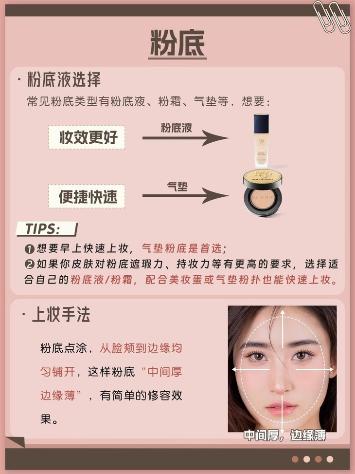 常见粉底类型有粉底液 粉霜 气垫等