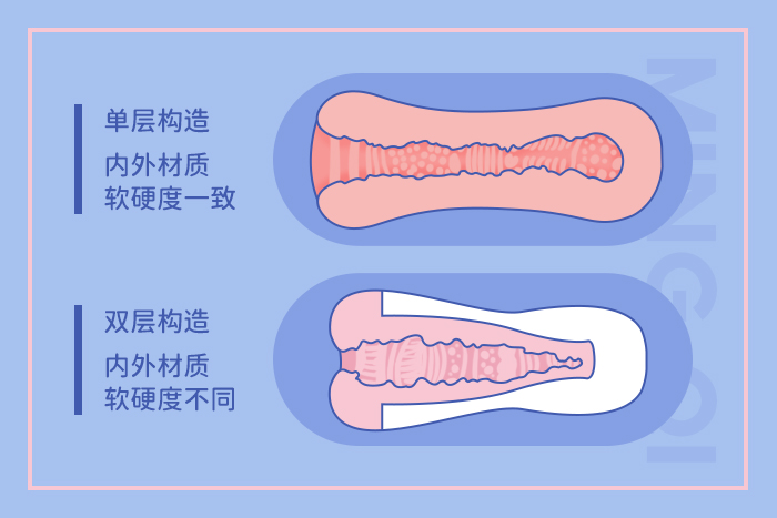 一般来说,双层构造的通道,内部材质会比外部更硬一点,增加刺激度。当然,也可以做的更软一些,舒适度就会更高。