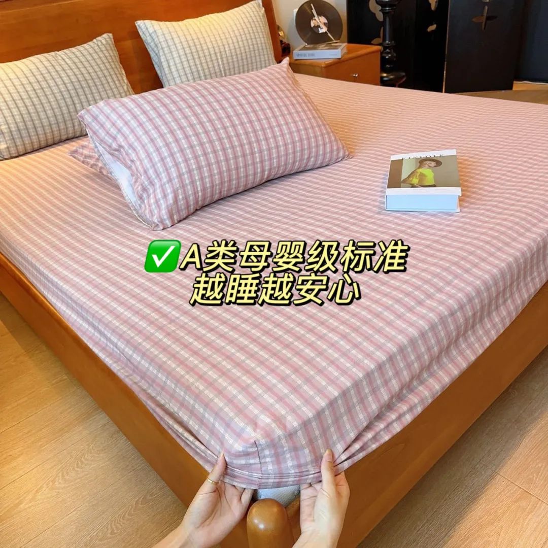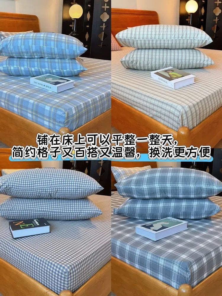 360°全包围设计,环保活性印染工艺,简约格子百搭,铺在床上很有高级感!