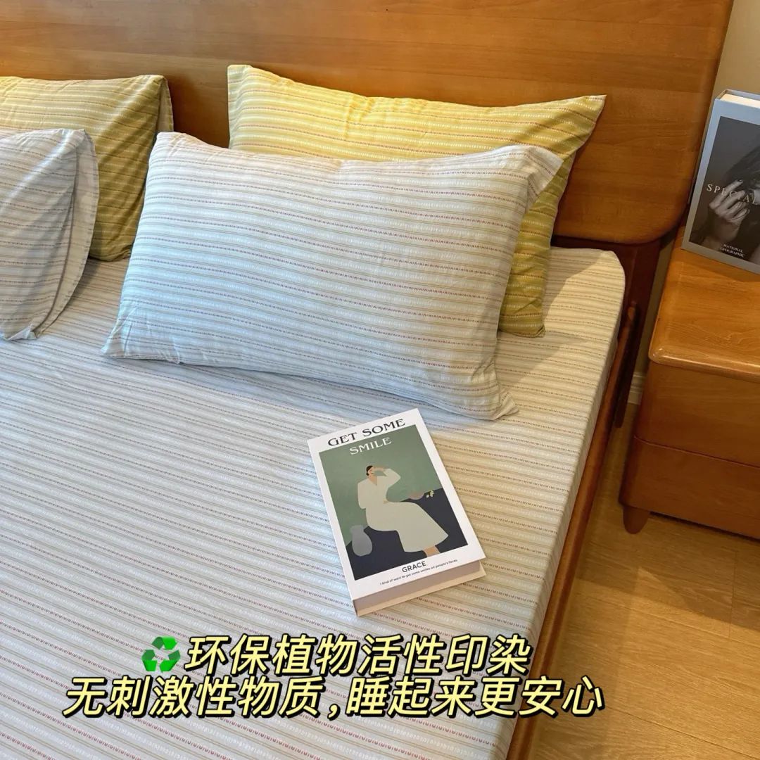 环保植物活性印染,在印染过程中不添加偶氮和甲醛,不含对人体有害的物质,洗多少遍都不褪色,睡起来更放心!