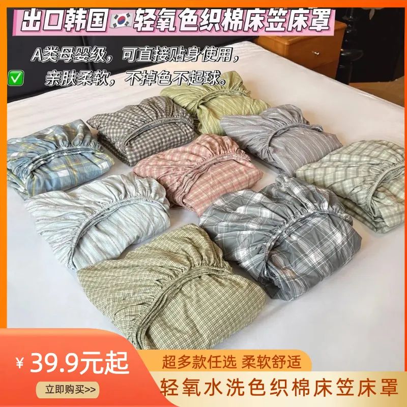 初秋必备 韩国🇰🇷出口轻氧水洗色织棉床笠床罩✨