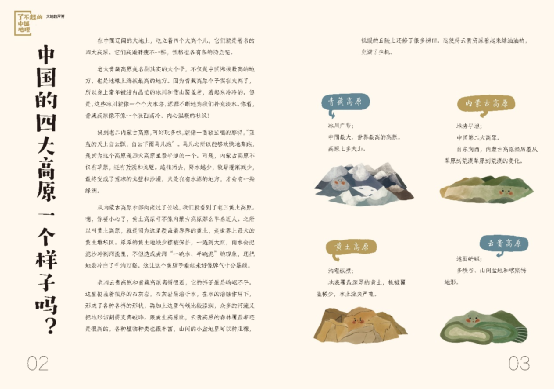 还给四大高原绘制了卡通形象,让孩子有一个直观的印象,也便于生动记忆。