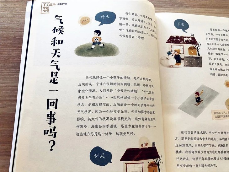 《这里是中国》这本,可以让孩子了解中国的地形、天气和气候、土壤、重要的山脉、河流与湖泊、南北方分界线等地理知识,从而对“中国大地是什么样子的”有一个印象。🔻