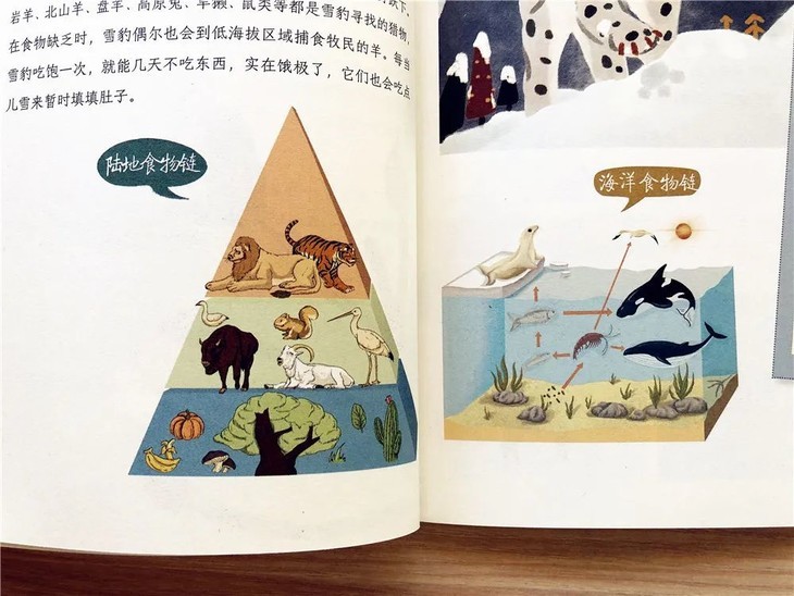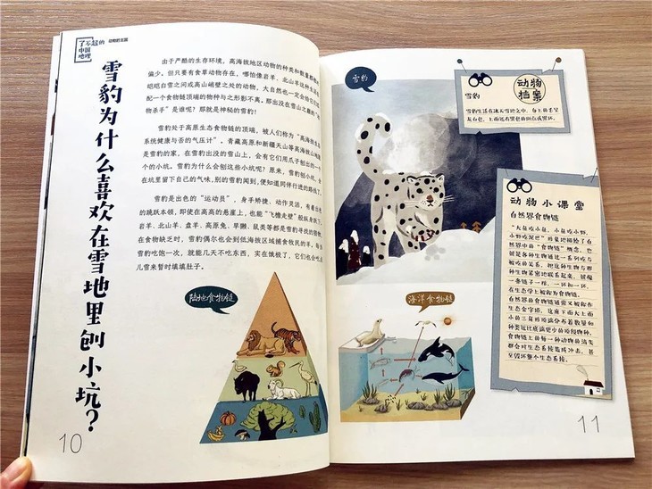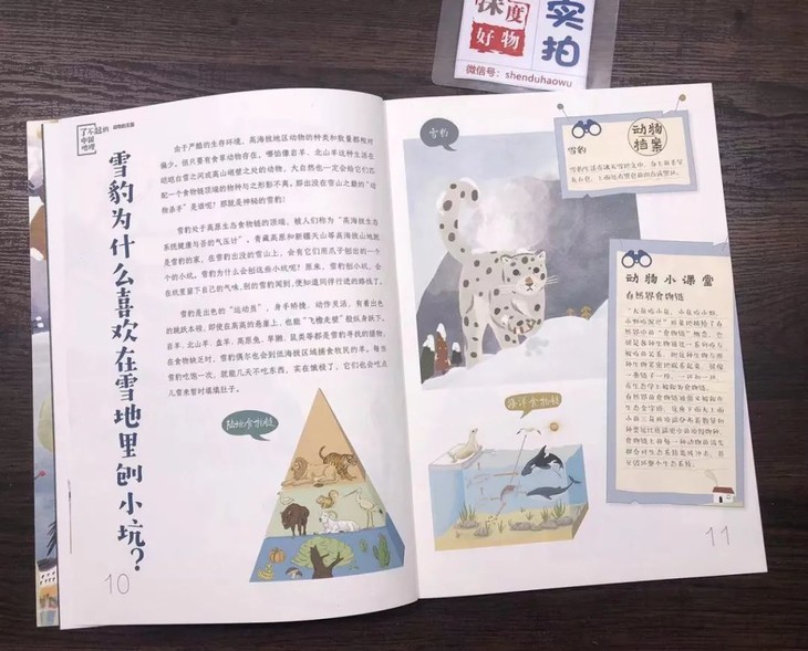 比如《动物的王国》中,“雪豹为什么喜欢在雪地里刨小坑?”看完书中的介绍,孩子会恍然大悟,原来,这可不是贪玩那么简单。🔻