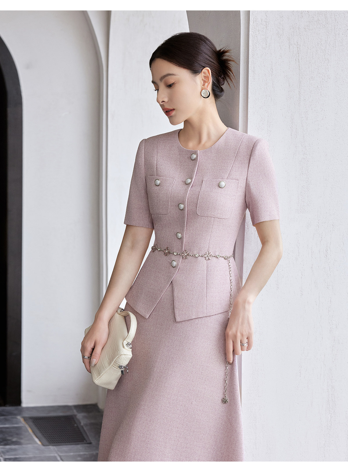 浅粉色香风连衣裙,是温柔与精致的完美融合。细腻的面料带着低调的肌理感,每一处细节都透着用心。