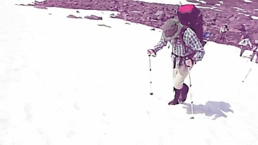 用登山杖辅助“高山休息步”行走。动图来源:视频Kick Step and Rest Step