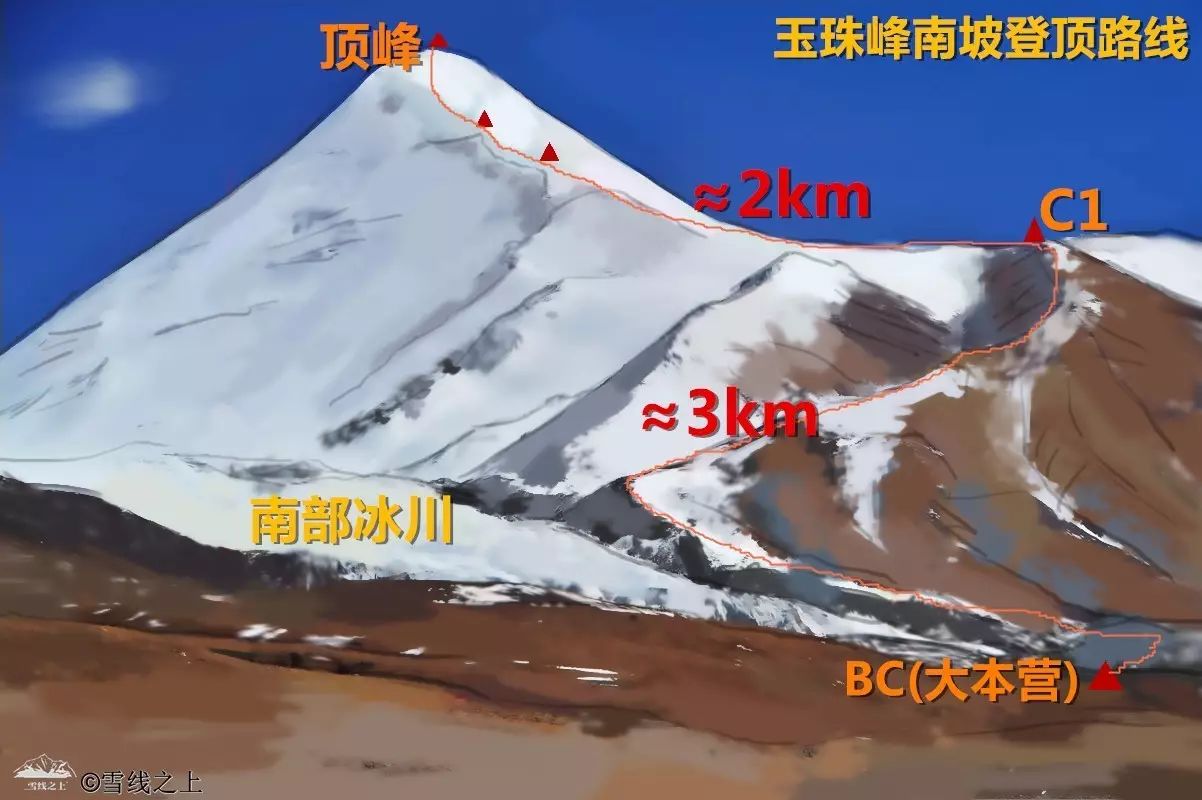 比如玉珠峰传统南坡登顶路线,从大本营到顶峰,不过5公里: