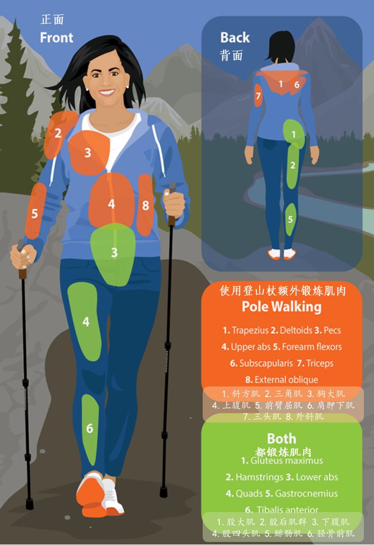5、使用登山杖比普通行走每小时可多燃烧20%卡路里,同时心率会提升4%到8.2%,锻炼效果更明显。