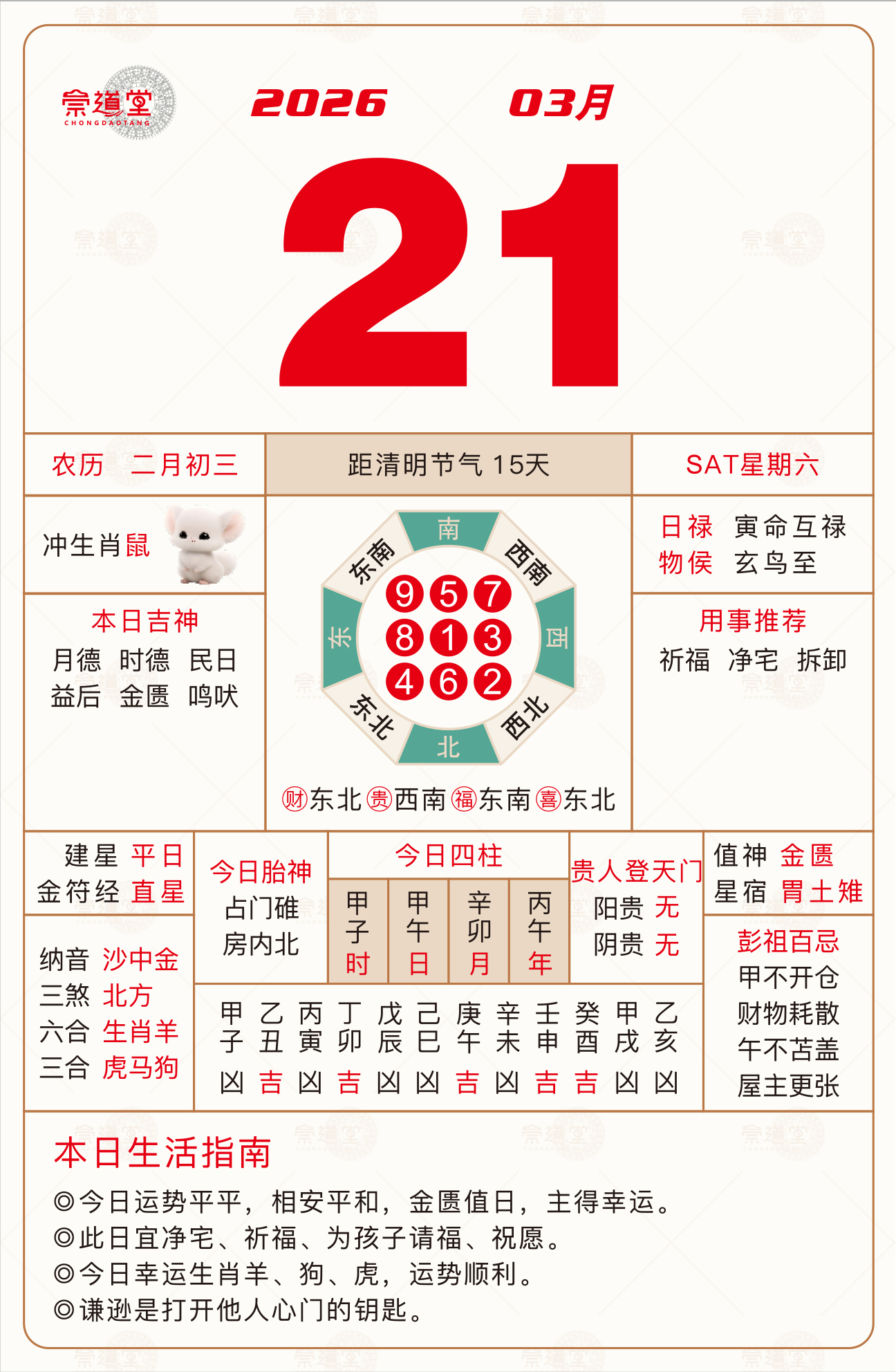 2026年3月26日 农历二月初八 己亥日 冲蛇