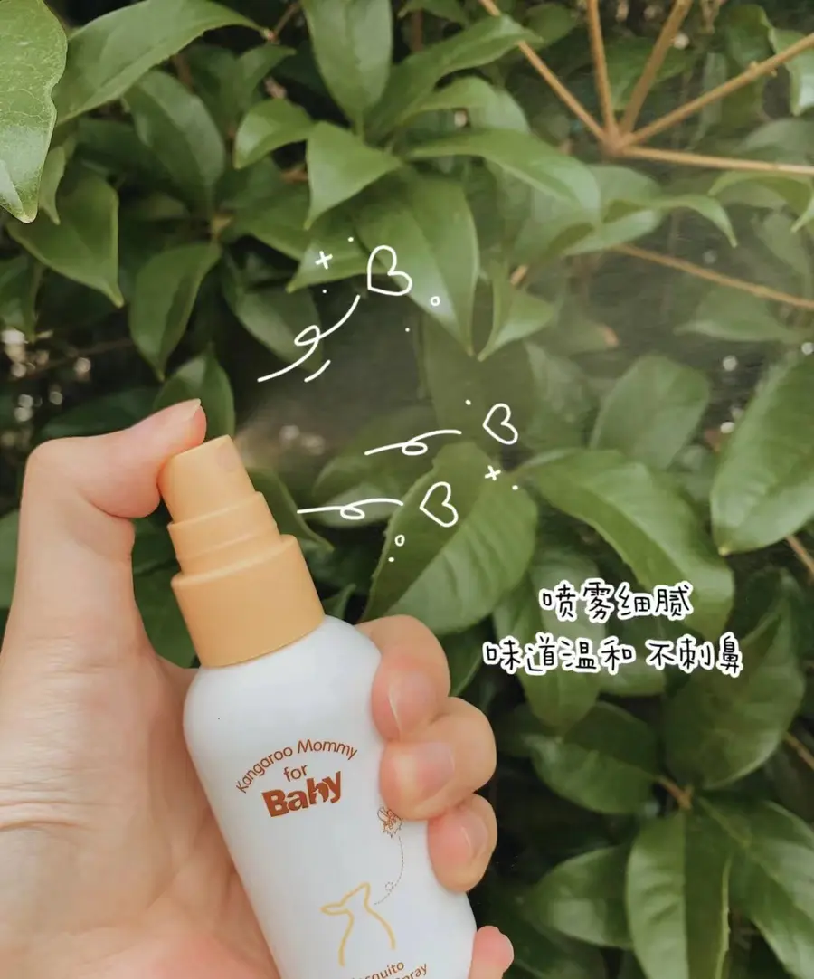 期间买了不少各种牌子的喷雾,有的驱蚊效果不好,有的味道刺鼻,还有的一喷出来就浓浓的酒精味儿,我可不敢给宝宝用。踩了几个雷之后发现袋鼠比比驱蚊喷雾挺好用的