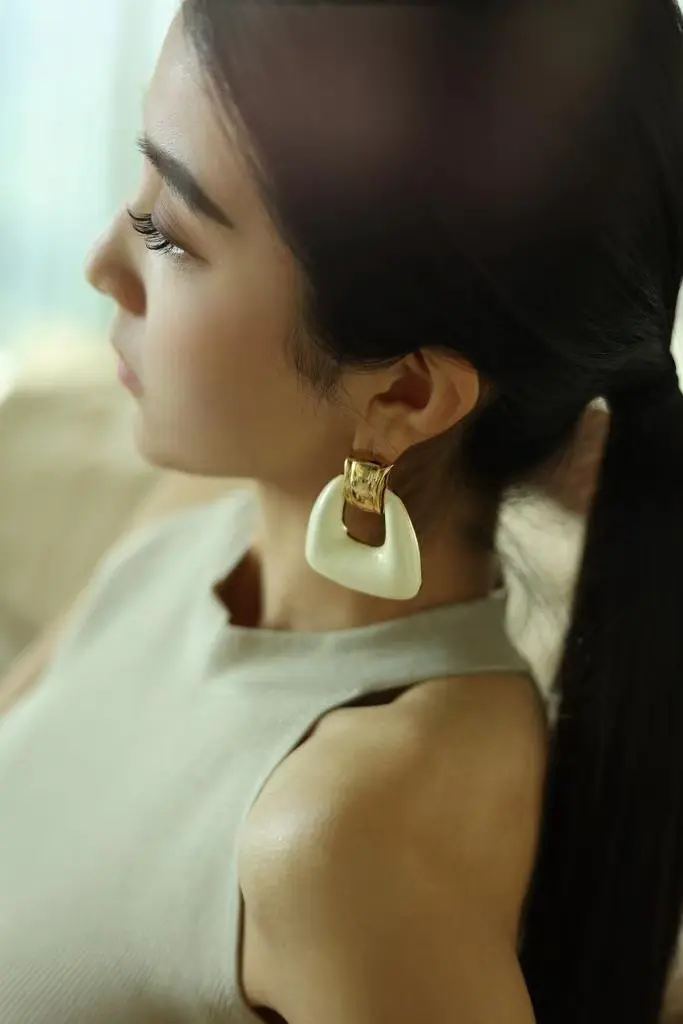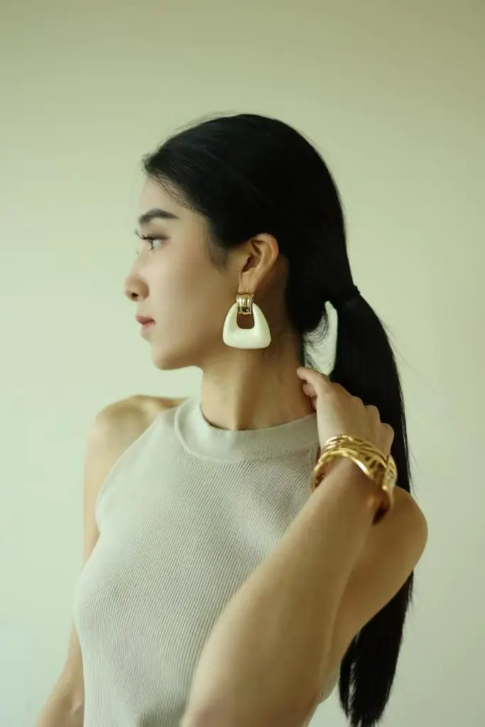 优雅与时尚的完美交汇,明星@刘孜佩戴奥斯白色珐琅耳环,演绎经典与现代的融合之美。