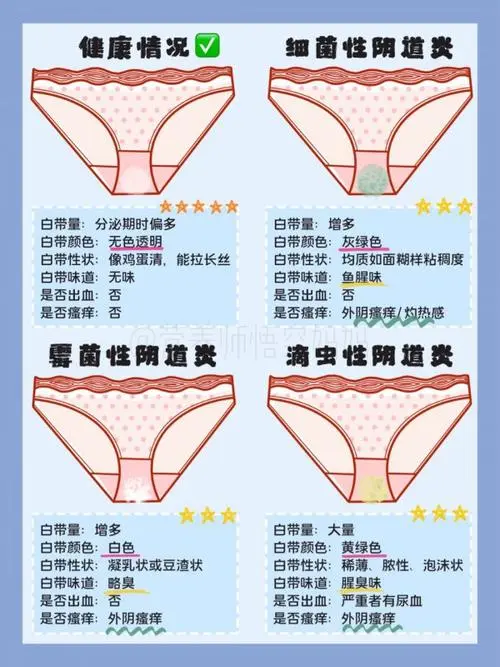 多观察白带情况:白带是女性健康的“晴雨表”,上完厕所低头看看白带情况,一旦发现白带在量、色、质、气味等方面出现问题就要引起重视了。应及时到正规医院进行检查,了解病因。