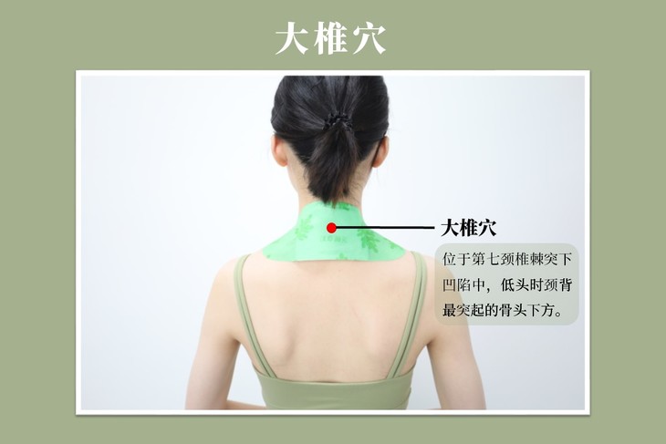 位于第七颈椎棘突下凹陷中,低头时颈背最突起的骨头下方,是阳气与督脉的会合之处,能解表通阳、清脑宁神。