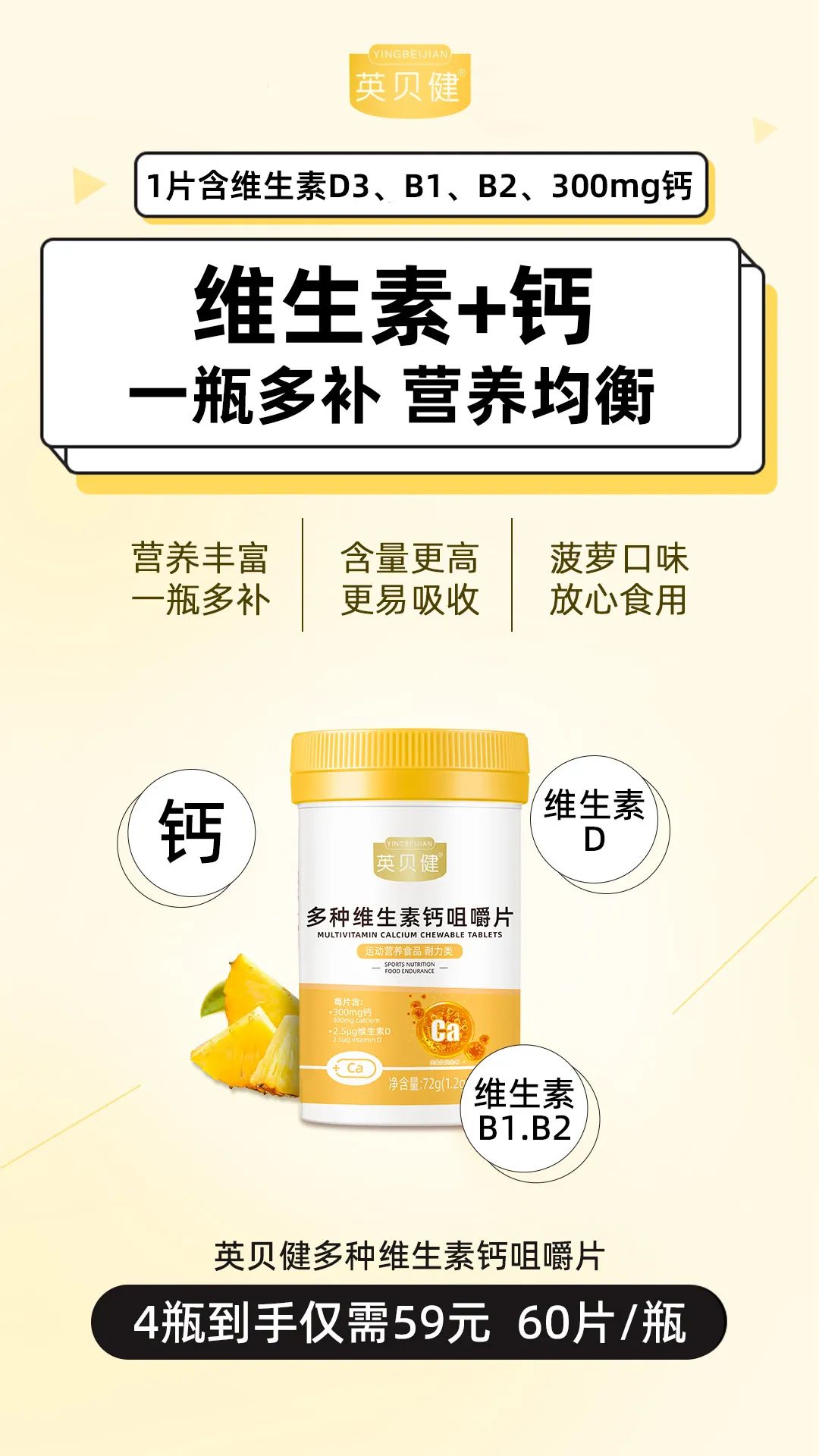 英贝健买1瓶顶3瓶✔️✔️✔️ 1片含有300mg钙➕2.5u维生素D➕1mg维生素B1➕1mg维生素B2❗️