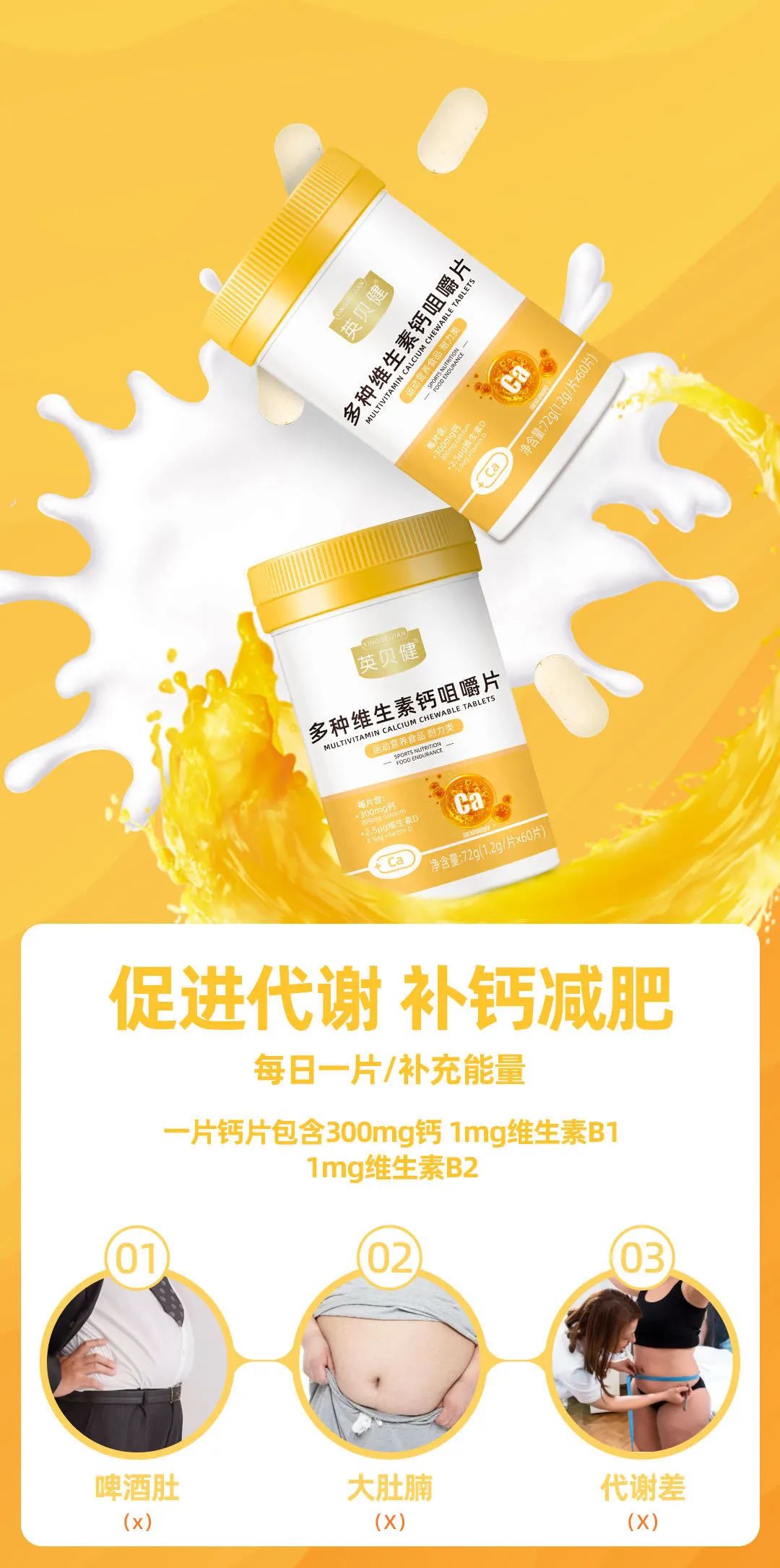 好评反馈太多太多了🔥 健身教练说瘦身必吃维生素B类钙片 一方面保护骨骼|一方面加速身体代谢~ 久坐、不怎么运动、需要减肉肉的来