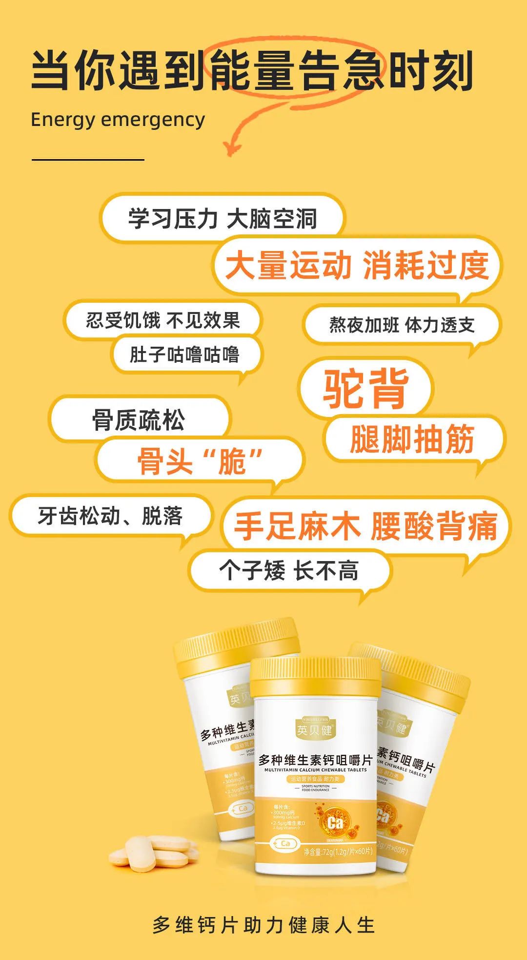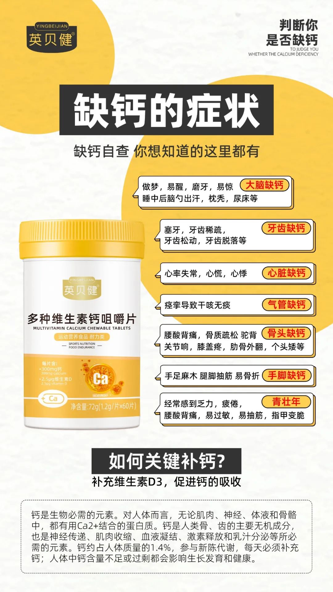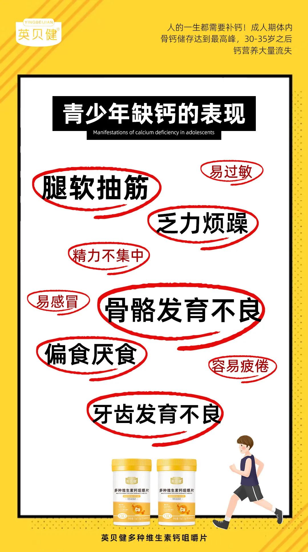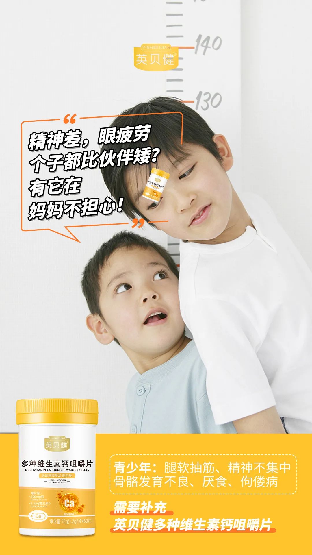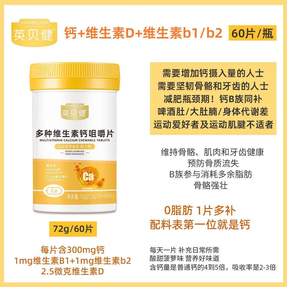让骨骼钙满满!成长期的孩子,补钙又保持好身材的学生党!骨骼脆弱的父母,人人都需要💪 CCTV上榜!中国品牌500强!大品牌出品!不仅各大医院医生推荐!就连各大知名主播都在推荐英贝健!国民老牌子联合营养学博士力荐多种维生素钙!👍👍👍
