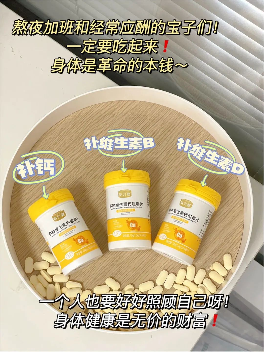 英贝健这一瓶钙、维生素都有了~而且是权威营养专家科学配比,比你这买一瓶、那买一瓶的有效多了✔️
