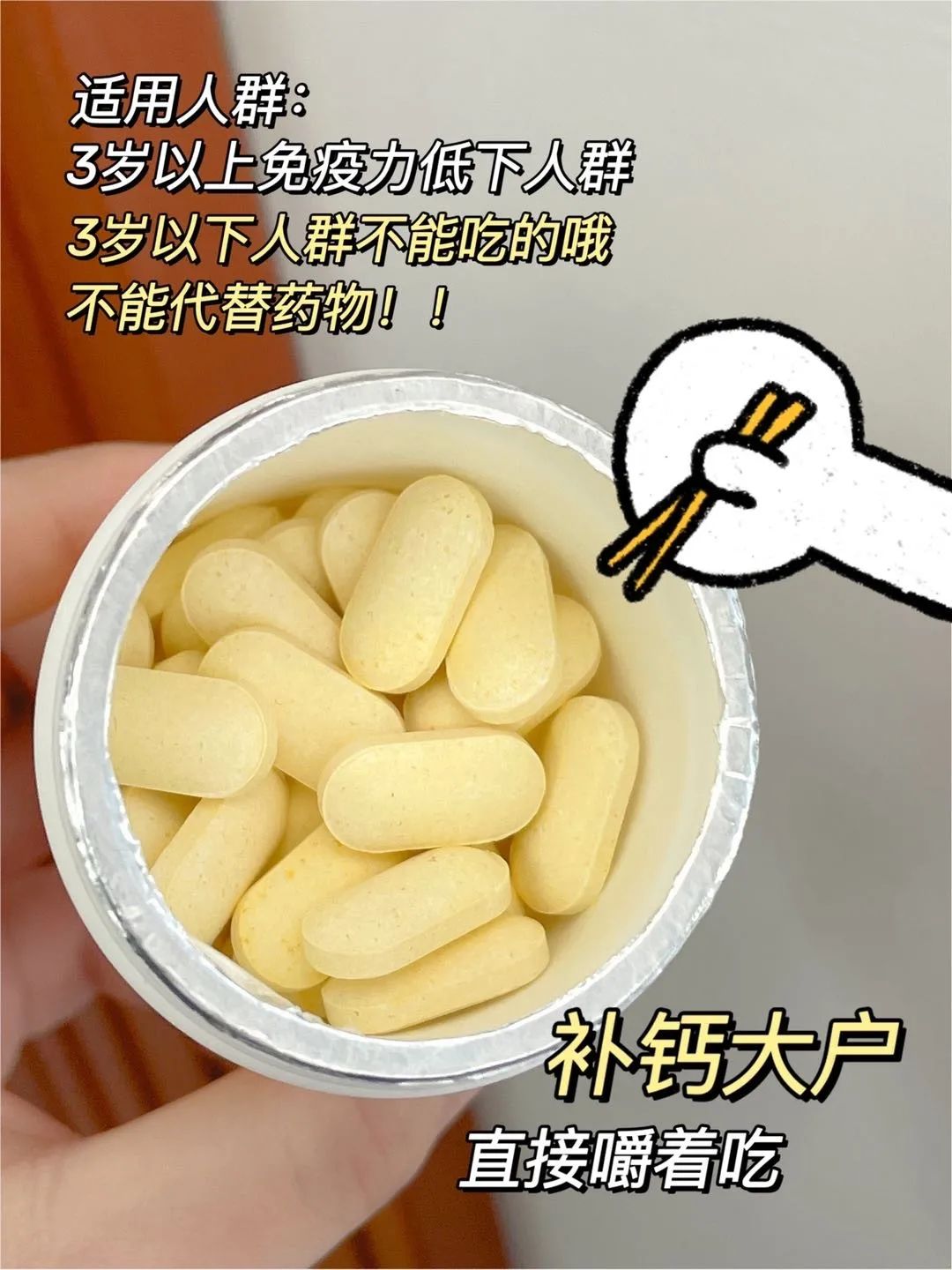骨骼棒,一定要吃它‼️ 牙齿好,一定要吃它‼️ 老的慢,一定要吃它‼️ 身材美,一定要吃它‼️ 脸不暗,一定要吃它‼️ 长高个,一定要吃它‼️ 代谢快,一定要吃它‼️ 为了更健康!更年轻!一定要吃多种维生素钙