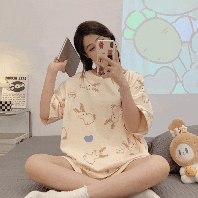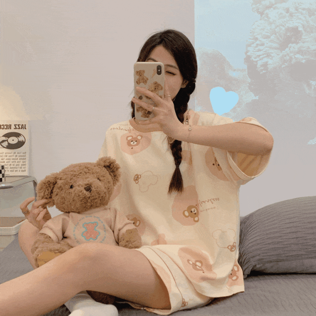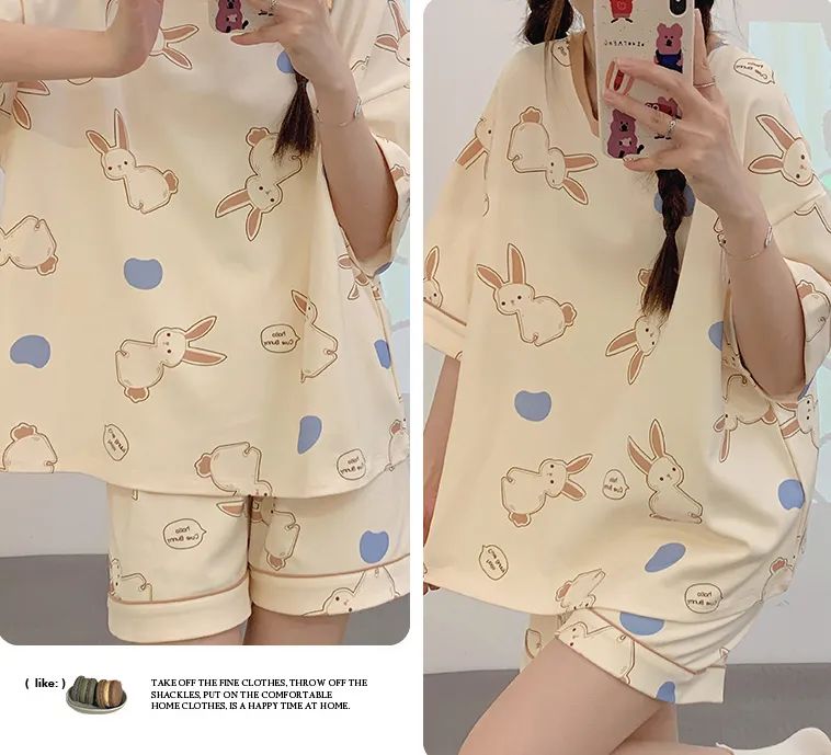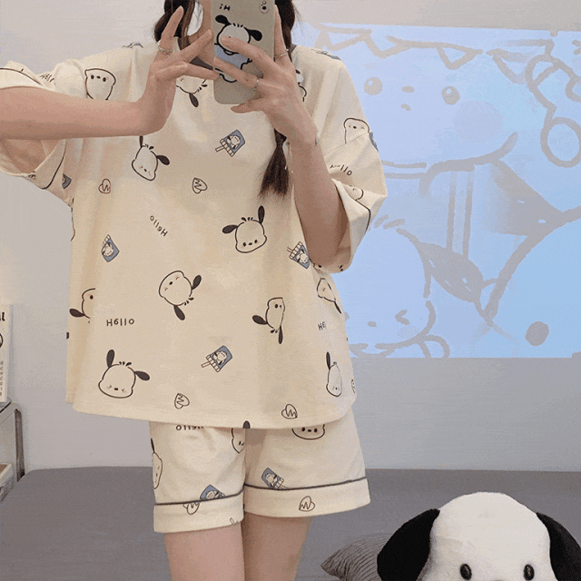 正好也升温了,就给大家推荐👉这6款夏季家居服套装——“卡通风”短款家居服