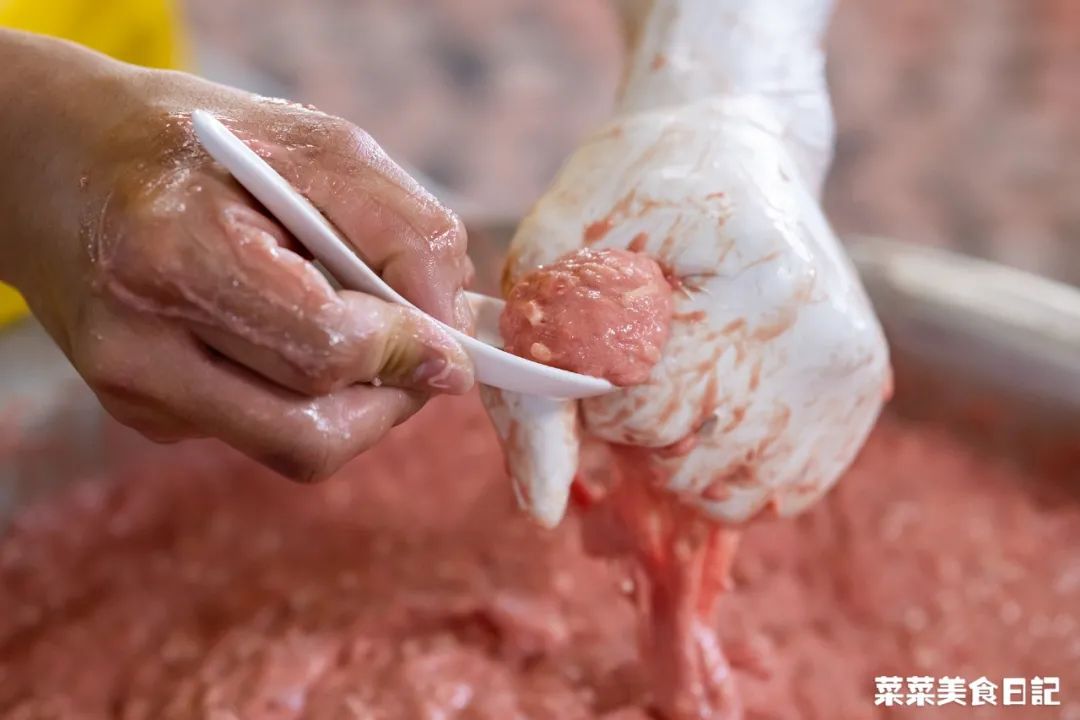 看这黏连不断、丝毫不粘手的肉浆👇