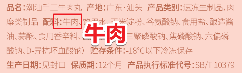(配料表都写牛肉),或直接