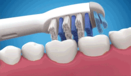举个例子,飞利浦的刷头是左右摆动,它的清洁原理是:通过马达驱动刷头,产生达到声波级别频率的高速往复振动,震频多在23000-37000次/分钟,利用高速驱动水流产生冲击,清洁牙齿表面及牙缝内部滞留物。